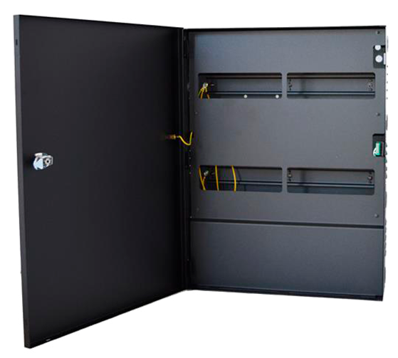 DIN Rail cabinet with support for 2 rows by 2 columns (4 modules). Complete with removable door, tamper switch and lockset. Includes space for 2 x 12VDC batteries. Dimensions : 48.3 cm x 36.83 cm x 10 cm (19'' x 14.5'' x 4'') Weight : 6.6 kg (14.5 lbs) |