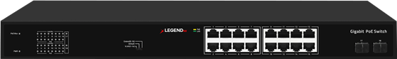 LGNX162POE is a 16-port Gigabit unmanaged PoE switch designed with energy efficiency in mind. With 16 PoE+ RJ45 ports (30W max each) and 2 Gigabit SFP uplinks, it delivers a 36Gbps switching capacity, 200W PoE budget, and supports VLAN and store-and-forward switching. Featuring built-in surge protection and extended transmission up to 250m, it ensures reliable performance in rack-mount installations, operating within a -10°C to 50°C range.